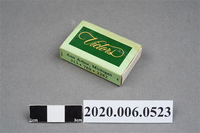 1.餐廳、飯店為主等廣告的火柴盒,可以說是早期瓦斯爐尚不盛行,又可達到廣告宣傳的小小載體。而火柴盒上通常有商家中英文名稱、商標或電話,偶有營業品項或設備,如桃花鄉酒家有電話與強調有冷暖設備、春成八卦窯則強調自家為「專製紅磚」、百利餐廳宣傳自家為法式西餐、飲料名酒、喜慶宴席、正宗中菜等。 2.臺灣在打火機與瓦斯爐普及前,火柴是臺灣重要的民生物資,因此火柴生產也行程專門產業,商家透過印製宣傳火柴盒作為贈品,用以販售或免費宣傳發送,盒面商標各具特色,例如臺灣火柴公司發行的「自由之火」火柴盒正面使用熊熊火把作為商標。而本件文物則有各家飯店的名稱,如圓山大飯店、希爾頓大飯店、六福客棧等,皆是現今仍持續營業的商家。
