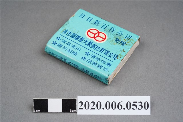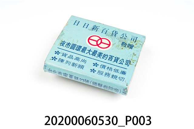 1.餐廳、飯店為主等廣告的火柴盒,可以說是早期瓦斯爐尚不盛行,又可達到廣告宣傳的小小載體。而火柴盒上通常有商家中英文名稱、商標或電話,偶有營業品項或設備,如桃花鄉酒家有電話與強調有冷暖設備、春成八卦窯則強調自家為「專製紅磚」、百利餐廳宣傳自家為法式西餐、飲料名酒、喜慶宴席、正宗中菜等。 2.臺灣在打火機與瓦斯爐普及前,火柴是臺灣重要的民生物資,因此火柴生產也行程專門產業,商家透過印製宣傳火柴盒作為贈品,用以販售或免費宣傳發送,盒面商標各具特色,例如臺灣火柴公司發行的「自由之火」火柴盒正面使用熊熊火把作為商標。而本件文物則有各家飯店的名稱,如圓山大飯店、希爾頓大飯店、六福客棧等,皆是現今仍持續營業的商家。