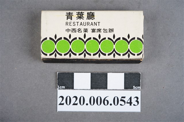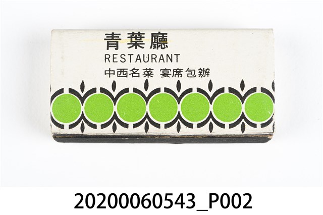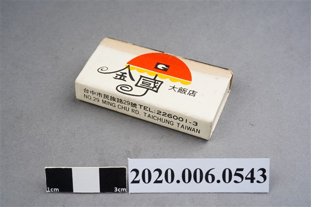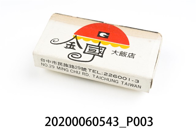 1.餐廳、飯店為主等廣告的火柴盒,可以說是早期瓦斯爐尚不盛行,又可達到廣告宣傳的小小載體。火柴盒的外觀也不限於僅有四角形,開始出現六角形或長方形盒裝,也有外觀如小屋子的造型。 2.臺灣在打火機與瓦斯爐普及前,火柴是臺灣重要的民生物資,因此火柴生產也行程專門產業,商家透過印製宣傳火柴盒作為贈品,用以販售或免費宣傳發送,盒面商標各具特色,例如臺灣火柴公司發行的「自由之火」火柴盒正面使用熊熊火把作為商標。而本件文物則有各家飯店的名稱,有些火柴盒側邊會有廣告公司與或火柴製造商,如有國榮廣告火柴公司承製、地址為新竹市中正路18號(火車站前)、電話則有各地專線(新竹、臺北、高雄)。也隨著火柴廣告公司的出現,火柴盒的廣告呈現方式也有所不同,如部份有明的商家則簡單陳述「臺北‧華西街 台南担仔麵」名稱。