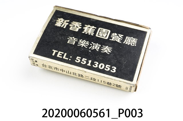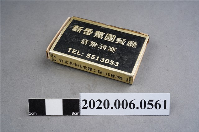 1.餐廳、飯店為主等廣告的火柴盒,可以說是早期瓦斯爐尚不盛行,又可達到廣告宣傳的小小載體。火柴盒的外觀也不限於僅有四角形,開始出現六角形或長方形盒裝,也有外觀如小屋子的造型。 2.臺灣在打火機與瓦斯爐普及前,火柴是臺灣重要的民生物資,因此火柴生產也行程專門產業,商家透過印製宣傳火柴盒作為贈品,用以販售或免費宣傳發送,盒面商標各具特色,例如臺灣火柴公司發行的「自由之火」火柴盒正面使用熊熊火把作為商標。而本件文物則有各家飯店的名稱,有些火柴盒側邊會有廣告公司與或火柴製造商,如有國榮廣告火柴公司承製、地址為新竹市中正路18號(火車站前)、電話則有各地專線(新竹、臺北、高雄)。也隨著火柴廣告公司的出現,火柴盒的廣告呈現方式也有所不同,如部份有明的商家則簡單陳述「臺北‧華西街 台南担仔麵」名稱。