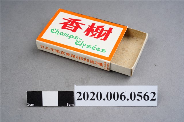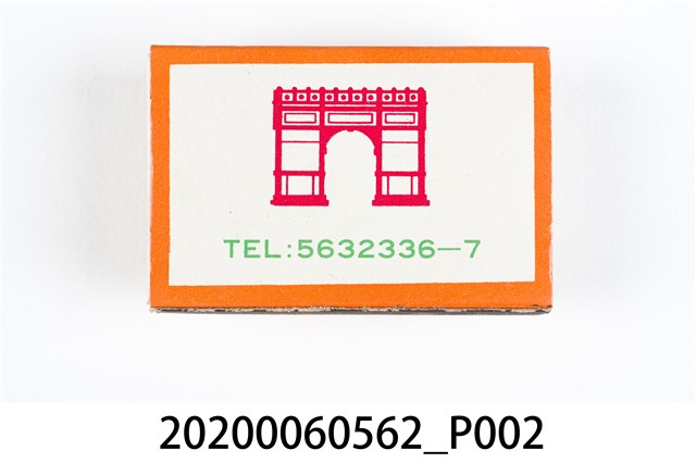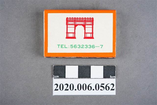 1.餐廳、飯店為主等廣告的火柴盒,可以說是早期瓦斯爐尚不盛行,又可達到廣告宣傳的小小載體。火柴盒的外觀也不限於僅有四角形,開始出現六角形或長方形盒裝,也有外觀如小屋子的造型。 2.臺灣在打火機與瓦斯爐普及前,火柴是臺灣重要的民生物資,因此火柴生產也行程專門產業,商家透過印製宣傳火柴盒作為贈品,用以販售或免費宣傳發送,盒面商標各具特色,例如臺灣火柴公司發行的「自由之火」火柴盒正面使用熊熊火把作為商標。而本件文物則有各家飯店的名稱,有些火柴盒側邊會有廣告公司與或火柴製造商,如有國榮廣告火柴公司承製、地址為新竹市中正路18號(火車站前)、電話則有各地專線(新竹、臺北、高雄)。也隨著火柴廣告公司的出現,火柴盒的廣告呈現方式也有所不同,如部份有明的商家則簡單陳述「臺北‧華西街 台南担仔麵」名稱。