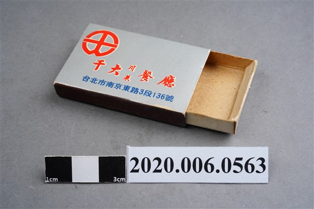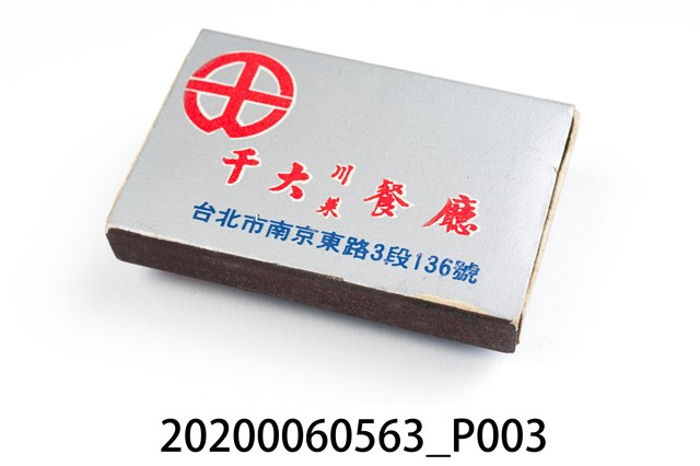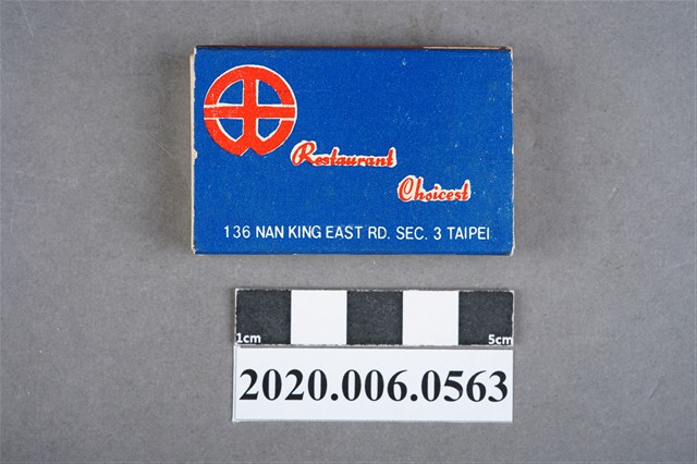 1.餐廳、飯店為主等廣告的火柴盒,可以說是早期瓦斯爐尚不盛行,又可達到廣告宣傳的小小載體。火柴盒的外觀也不限於僅有四角形,開始出現六角形或長方形盒裝,也有外觀如小屋子的造型。 2.臺灣在打火機與瓦斯爐普及前,火柴是臺灣重要的民生物資,因此火柴生產也行程專門產業,商家透過印製宣傳火柴盒作為贈品,用以販售或免費宣傳發送,盒面商標各具特色,例如臺灣火柴公司發行的「自由之火」火柴盒正面使用熊熊火把作為商標。而本件文物則有各家飯店的名稱,有些火柴盒側邊會有廣告公司與或火柴製造商,如有國榮廣告火柴公司承製、地址為新竹市中正路18號(火車站前)、電話則有各地專線(新竹、臺北、高雄)。也隨著火柴廣告公司的出現,火柴盒的廣告呈現方式也有所不同,如部份有明的商家則簡單陳述「臺北‧華西街 台南担仔麵」名稱。