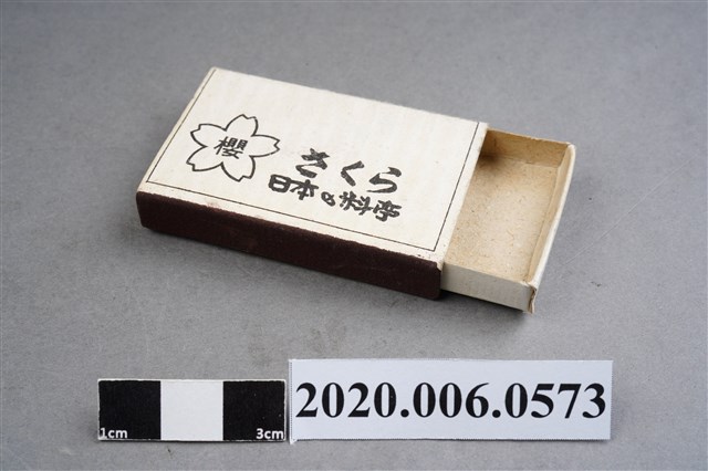 1.餐廳、飯店為主等廣告的火柴盒,可以說是早期瓦斯爐尚不盛行,又可達到廣告宣傳的小小載體。火柴盒的外觀也不限於僅有四角形,開始出現六角形或長方形盒裝,也有外觀如小屋子的造型。 2.臺灣在打火機與瓦斯爐普及前,火柴是臺灣重要的民生物資,因此火柴生產也行程專門產業,商家透過印製宣傳火柴盒作為贈品,用以販售或免費宣傳發送,盒面商標各具特色,例如臺灣火柴公司發行的「自由之火」火柴盒正面使用熊熊火把作為商標。而本件文物則有各家飯店的名稱,有些火柴盒側邊會有廣告公司與或火柴製造商,如有國榮廣告火柴公司承製、地址為新竹市中正路18號(火車站前)、電話則有各地專線(新竹、臺北、高雄)。也隨著火柴廣告公司的出現,火柴盒的廣告呈現方式也有所不同,如部份有明的商家則簡單陳述「臺北‧華西街 台南担仔麵」名稱。
