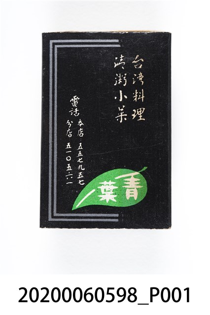 1.餐廳、飯店為主等廣告的火柴盒,可以說是早期瓦斯爐尚不盛行,又可達到廣告宣傳的小小載體。火柴盒的外觀也不限於僅有四角形,開始出現六角形或長方形盒裝,也有外觀如小屋子的造型。 2.臺灣在打火機與瓦斯爐普及前,火柴是臺灣重要的民生物資,因此火柴生產也行程專門產業,商家透過印製宣傳火柴盒作為贈品,用以販售或免費宣傳發送,盒面商標各具特色,例如臺灣火柴公司發行的「自由之火」火柴盒正面使用熊熊火把作為商標。而本件文物則有各家飯店的名稱,有些火柴盒側邊會有廣告公司與或火柴製造商,如有國榮廣告火柴公司承製、地址為新竹市中正路18號(火車站前)、電話則有各地專線(新竹、臺北、高雄)。也隨著火柴廣告公司的出現,火柴盒的廣告呈現方式也有所不同,如部份有明的商家則簡單陳述「臺北‧華西街 台南担仔麵」名稱。
