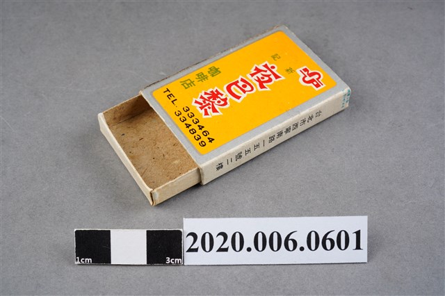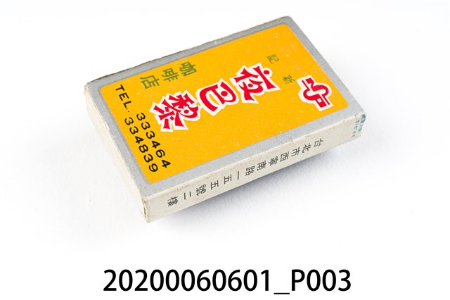 1.餐廳、飯店為主等廣告的火柴盒,可以說是早期瓦斯爐尚不盛行,又可達到廣告宣傳的小小載體。火柴盒的外觀也不限於僅有四角形,開始出現六角形或長方形盒裝,也有外觀如小屋子的造型。 2.臺灣在打火機與瓦斯爐普及前,火柴是臺灣重要的民生物資,因此火柴生產也行程專門產業,商家透過印製宣傳火柴盒作為贈品,用以販售或免費宣傳發送,盒面商標各具特色,例如臺灣火柴公司發行的「自由之火」火柴盒正面使用熊熊火把作為商標。而本件文物則有各家飯店的名稱,有些火柴盒側邊會有廣告公司與或火柴製造商,如有國榮廣告火柴公司承製、地址為新竹市中正路18號(火車站前)、電話則有各地專線(新竹、臺北、高雄)。也隨著火柴廣告公司的出現,火柴盒的廣告呈現方式也有所不同,如部份有明的商家則簡單陳述「臺北‧華西街 台南担仔麵」名稱。