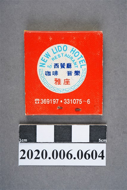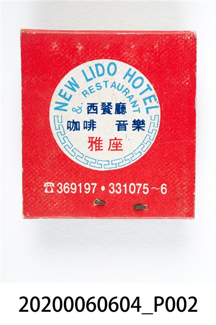 1.餐廳、飯店為主等廣告的火柴盒,可以說是早期瓦斯爐尚不盛行,又可達到廣告宣傳的小小載體。火柴盒的外觀也不限於僅有四角形,開始出現六角形或長方形盒裝,也有外觀如小屋子的造型。 2.臺灣在打火機與瓦斯爐普及前,火柴是臺灣重要的民生物資,因此火柴生產也行程專門產業,商家透過印製宣傳火柴盒作為贈品,用以販售或免費宣傳發送,盒面商標各具特色,例如臺灣火柴公司發行的「自由之火」火柴盒正面使用熊熊火把作為商標。而本件文物則有各家飯店的名稱,有些火柴盒側邊會有廣告公司與或火柴製造商,如有國榮廣告火柴公司承製、地址為新竹市中正路18號(火車站前)、電話則有各地專線(新竹、臺北、高雄)。也隨著火柴廣告公司的出現,火柴盒的廣告呈現方式也有所不同,如部份有明的商家則簡單陳述「臺北‧華西街 台南担仔麵」名稱。