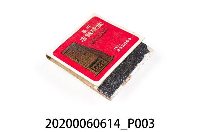 1.餐廳、飯店為主等廣告的火柴盒,可以說是早期瓦斯爐尚不盛行,又可達到廣告宣傳的小小載體。火柴盒的外觀也不限於僅有四角形,開始出現六角形或長方形盒裝,也有外觀如小屋子的造型。 2.臺灣在打火機與瓦斯爐普及前,火柴是臺灣重要的民生物資,因此火柴生產也行程專門產業,商家透過印製宣傳火柴盒作為贈品,用以販售或免費宣傳發送,盒面商標各具特色,例如臺灣火柴公司發行的「自由之火」火柴盒正面使用熊熊火把作為商標。而本件文物則有各家飯店的名稱,有些火柴盒側邊會有廣告公司與或火柴製造商,如有國榮廣告火柴公司承製、地址為新竹市中正路18號(火車站前)、電話則有各地專線(新竹、臺北、高雄)。也隨著火柴廣告公司的出現,火柴盒的廣告呈現方式也有所不同,如部份有明的商家則簡單陳述「臺北‧華西街 台南担仔麵」名稱。