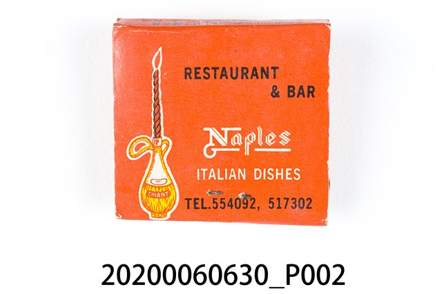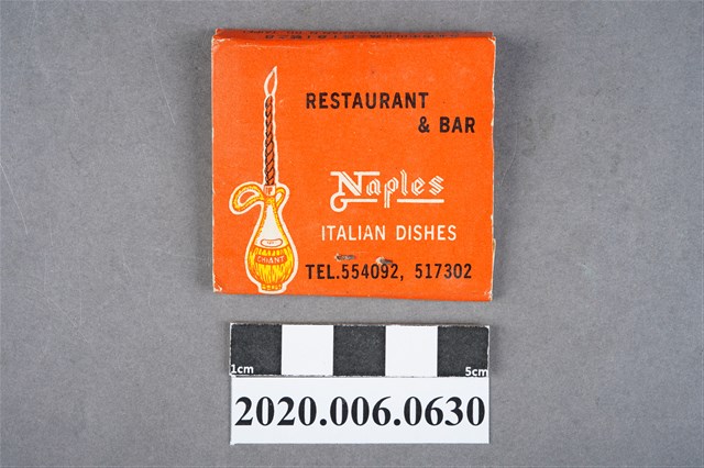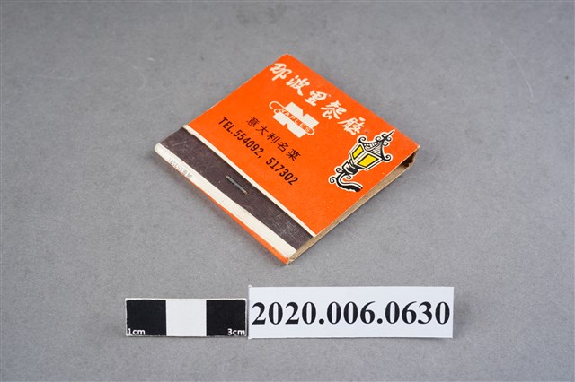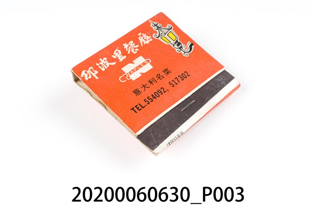 1.餐廳、飯店為主等廣告的火柴盒,可以說是早期瓦斯爐尚不盛行,又可達到廣告宣傳的小小載體。火柴盒的外觀也不限於僅有四角形,開始出現六角形或長方形盒裝,也有外觀如小屋子的造型。 2.臺灣在打火機與瓦斯爐普及前,火柴是臺灣重要的民生物資,因此火柴生產也行程專門產業,商家透過印製宣傳火柴盒作為贈品,用以販售或免費宣傳發送,盒面商標各具特色,例如臺灣火柴公司發行的「自由之火」火柴盒正面使用熊熊火把作為商標。而本件文物則有各家飯店的名稱,有些火柴盒側邊會有廣告公司與或火柴製造商,如有國榮廣告火柴公司承製、地址為新竹市中正路18號(火車站前)、電話則有各地專線(新竹、臺北、高雄)。也隨著火柴廣告公司的出現,火柴盒的廣告呈現方式也有所不同,如部份有明的商家則簡單陳述「臺北‧華西街 台南担仔麵」名稱。