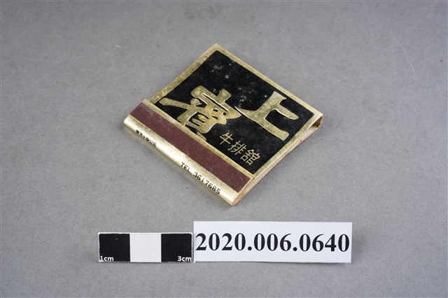 1.餐廳、飯店為主等廣告的火柴盒,可以說是早期瓦斯爐尚不盛行,又可達到廣告宣傳的小小載體。火柴盒的外觀也不限於僅有四角形,開始出現六角形或長方形盒裝,也有外觀如小屋子的造型。 2.臺灣在打火機與瓦斯爐普及前,火柴是臺灣重要的民生物資,因此火柴生產也行程專門產業,商家透過印製宣傳火柴盒作為贈品,用以販售或免費宣傳發送,盒面商標各具特色,例如臺灣火柴公司發行的「自由之火」火柴盒正面使用熊熊火把作為商標。而本件文物則有各家飯店的名稱,有些火柴盒側邊會有廣告公司與或火柴製造商,如有國榮廣告火柴公司承製、地址為新竹市中正路18號(火車站前)、電話則有各地專線(新竹、臺北、高雄)。也隨著火柴廣告公司的出現,火柴盒的廣告呈現方式也有所不同,如部份有明的商家則簡單陳述「臺北‧華西街 台南担仔麵」名稱。