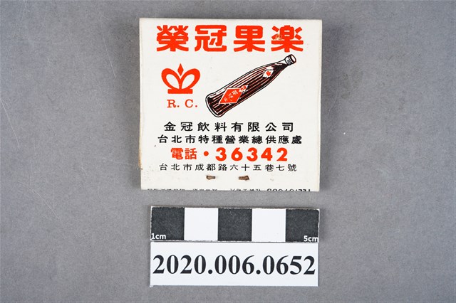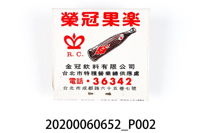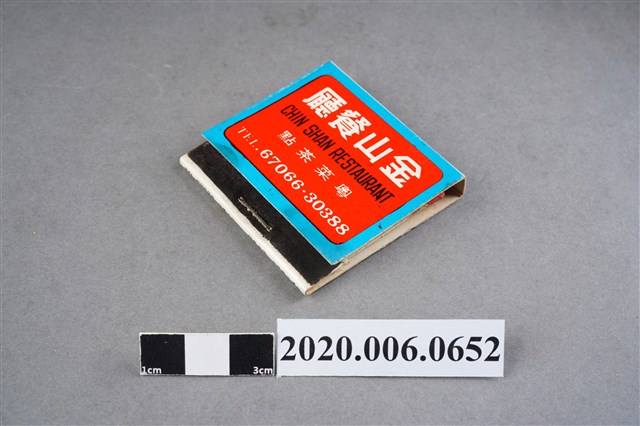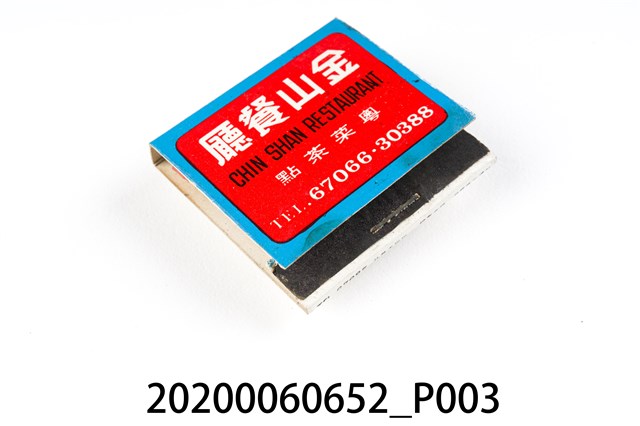 1.餐廳、飯店為主等廣告的火柴盒,可以說是早期瓦斯爐尚不盛行,又可達到廣告宣傳的小小載體。火柴盒的外觀也不限於僅有四角形,開始出現六角形或長方形盒裝,也有外觀如小屋子的造型。 2.臺灣在打火機與瓦斯爐普及前,火柴是臺灣重要的民生物資,因此火柴生產也行程專門產業,商家透過印製宣傳火柴盒作為贈品,用以販售或免費宣傳發送,盒面商標各具特色,例如臺灣火柴公司發行的「自由之火」火柴盒正面使用熊熊火把作為商標。而本件文物則有各家飯店的名稱,有些火柴盒側邊會有廣告公司與或火柴製造商,如有國榮廣告火柴公司承製、地址為新竹市中正路18號(火車站前)、電話則有各地專線(新竹、臺北、高雄)。也隨著火柴廣告公司的出現,火柴盒的廣告呈現方式也有所不同,如部份有明的商家則簡單陳述「臺北‧華西街 台南担仔麵」名稱。