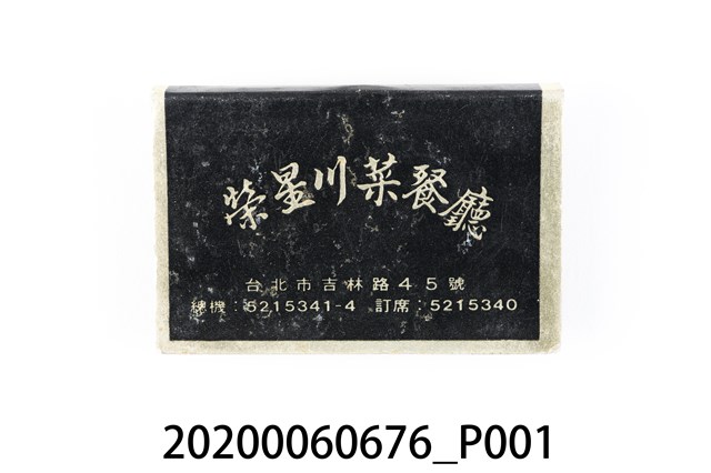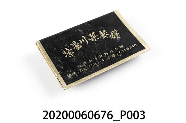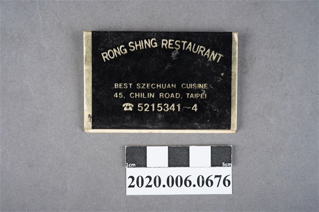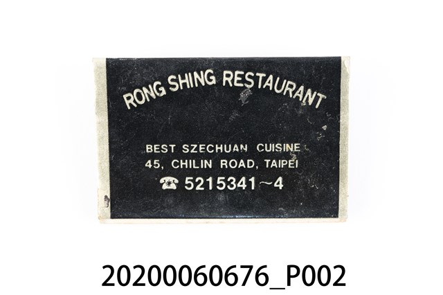 1.餐廳、飯店為主等廣告的火柴盒,可以說是早期瓦斯爐尚不盛行,又可達到廣告宣傳的小小載體。火柴盒的外觀也不限於僅有四角形,開始出現六角形或長方形盒裝,也有外觀如小屋子的造型。 2.臺灣在打火機與瓦斯爐普及前,火柴是臺灣重要的民生物資,因此火柴生產也行程專門產業,商家透過印製宣傳火柴盒作為贈品,用以販售或免費宣傳發送,盒面商標各具特色,例如臺灣火柴公司發行的「自由之火」火柴盒正面使用熊熊火把作為商標。而本件文物則有各家飯店的名稱,有些火柴盒側邊會有廣告公司與或火柴製造商,如有國榮廣告火柴公司承製、地址為新竹市中正路18號(火車站前)、電話則有各地專線(新竹、臺北、高雄)。也隨著火柴廣告公司的出現,火柴盒的廣告呈現方式也有所不同,如部份有明的商家則簡單陳述「臺北‧華西街 台南担仔麵」名稱。
