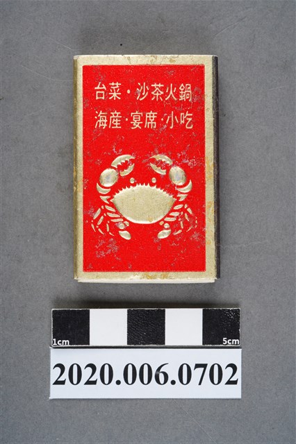 1.內容主要以餐廳、菜館、音響廳、歌廳、夜總會與俱樂部為主的廣告火柴盒。本件文物則有餐廳、店家、歌廳或酒家的名稱。有些火柴盒側邊會有廣告公司與或火柴製造商,如有國榮廣告火柴公司承製、地址為新竹市中正路18號(火車站前)、電話則有各地專線(新竹、臺北、高雄)。也隨著火柴廣告公司的出現,火柴盒的廣告呈現方式也有所不同,類似現今商標LOGO的呈現方式。本件文物的各式餐廳,可以發現類型豐富,包含中式料理、西式料理、越南料理、粵菜料理、日式料理、蒙古烤肉、咖啡店、海產料理。且類型也相當多元,正規西餐廳、一般餐廳、飯店、俱樂部、歌廳、酒家等皆透過火柴盒廣告與宣傳。2.臺灣在打火機與瓦斯爐普及前,火柴是臺灣重要的民生物資,因此火柴生產也行程專門產業,商家透過印製宣傳火柴盒作為贈品,用以販售或免費宣傳發送,盒面商標各具特色,例如臺灣火柴公司發行的「自由之火」火柴盒正面使用熊熊火把作為商標。