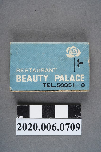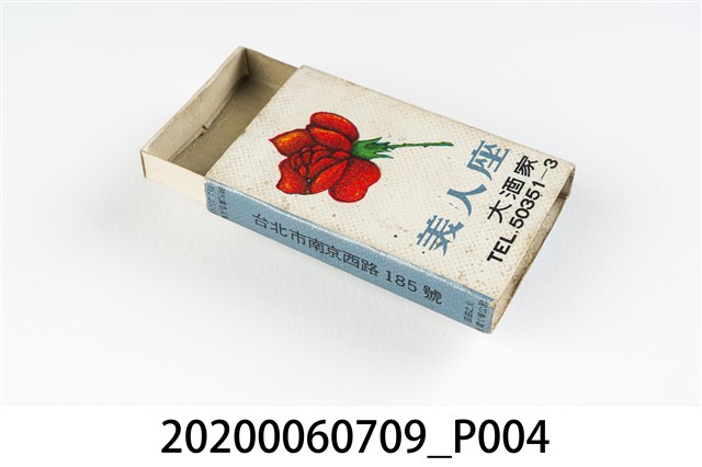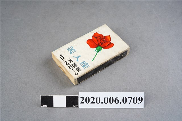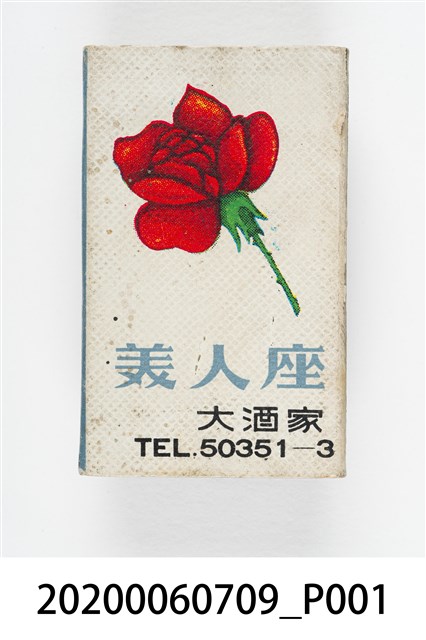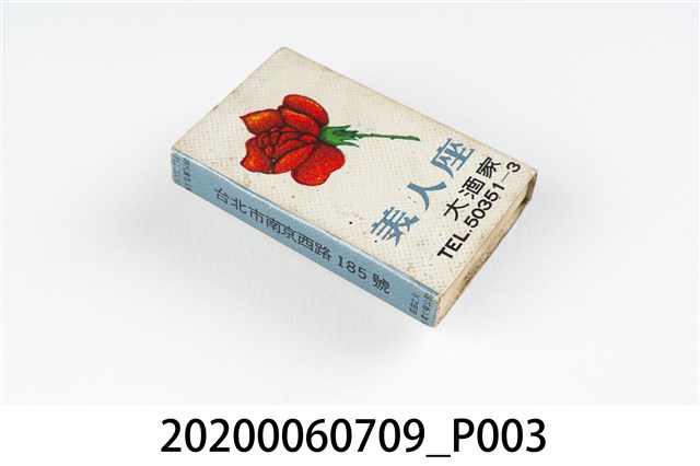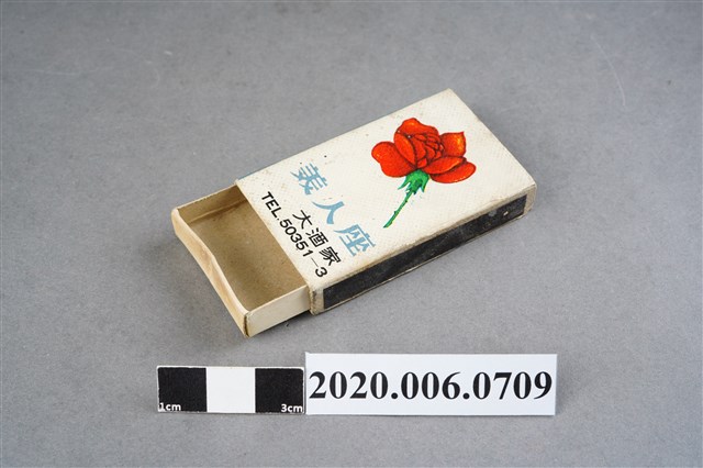 1.內容主要以餐廳、菜館、音響廳、歌廳、夜總會與俱樂部為主的廣告火柴盒。本件文物則有餐廳、店家、歌廳或酒家的名稱。有些火柴盒側邊會有廣告公司與或火柴製造商,如有國榮廣告火柴公司承製、地址為新竹市中正路18號(火車站前)、電話則有各地專線(新竹、臺北、高雄)。也隨著火柴廣告公司的出現,火柴盒的廣告呈現方式也有所不同,類似現今商標LOGO的呈現方式。本件文物的各式餐廳,可以發現類型豐富,包含中式料理、西式料理、越南料理、粵菜料理、日式料理、蒙古烤肉、咖啡店、海產料理。且類型也相當多元,正規西餐廳、一般餐廳、飯店、俱樂部、歌廳、酒家等皆透過火柴盒廣告與宣傳。2.臺灣在打火機與瓦斯爐普及前,火柴是臺灣重要的民生物資,因此火柴生產也行程專門產業,商家透過印製宣傳火柴盒作為贈品,用以販售或免費宣傳發送,盒面商標各具特色,例如臺灣火柴公司發行的「自由之火」火柴盒正面使用熊熊火把作為商標。