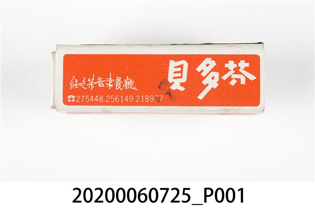1.內容主要以餐廳、菜館、音響廳、歌廳、夜總會與俱樂部為主的廣告火柴盒。本件文物則有餐廳、店家、歌廳或酒家的名稱。有些火柴盒側邊會有廣告公司與或火柴製造商,如有國榮廣告火柴公司承製、地址為新竹市中正路18號(火車站前)、電話則有各地專線(新竹、臺北、高雄)。也隨著火柴廣告公司的出現,火柴盒的廣告呈現方式也有所不同,類似現今商標LOGO的呈現方式。本件文物的各式餐廳,可以發現類型豐富,包含中式料理、西式料理、越南料理、粵菜料理、日式料理、蒙古烤肉、咖啡店、海產料理。且類型也相當多元,正規西餐廳、一般餐廳、飯店、俱樂部、歌廳、酒家等皆透過火柴盒廣告與宣傳。2.臺灣在打火機與瓦斯爐普及前,火柴是臺灣重要的民生物資,因此火柴生產也行程專門產業,商家透過印製宣傳火柴盒作為贈品,用以販售或免費宣傳發送,盒面商標各具特色,例如臺灣火柴公司發行的「自由之火」火柴盒正面使用熊熊火把作為商標。