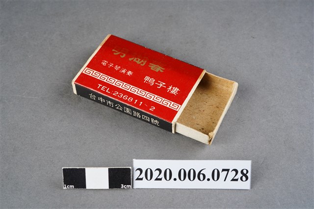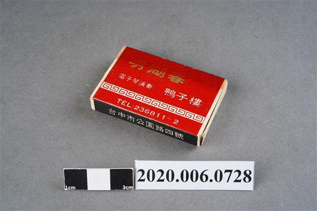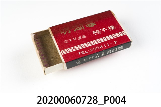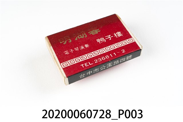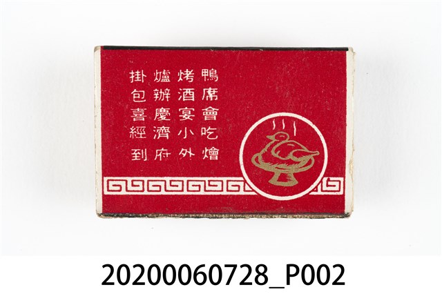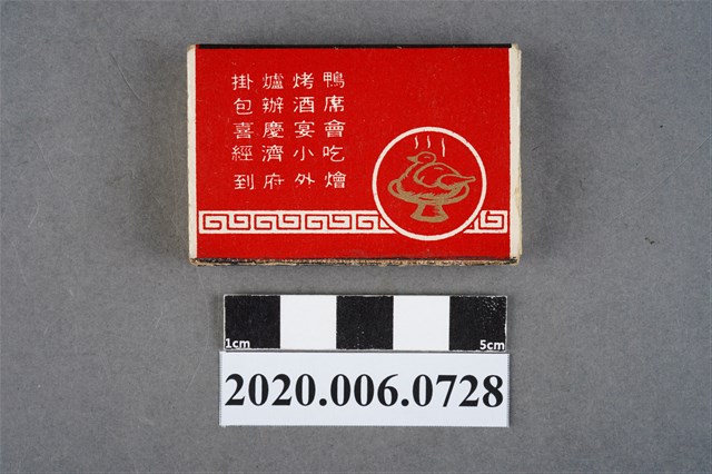 1.內容主要以餐廳、菜館、音響廳、歌廳、夜總會與俱樂部為主的廣告火柴盒。本件文物則有餐廳、店家、歌廳或酒家的名稱。有些火柴盒側邊會有廣告公司與或火柴製造商,如有國榮廣告火柴公司承製、地址為新竹市中正路18號(火車站前)、電話則有各地專線(新竹、臺北、高雄)。也隨著火柴廣告公司的出現,火柴盒的廣告呈現方式也有所不同,類似現今商標LOGO的呈現方式。本件文物的各式餐廳,可以發現類型豐富,包含中式料理、西式料理、越南料理、粵菜料理、日式料理、蒙古烤肉、咖啡店、海產料理。且類型也相當多元,正規西餐廳、一般餐廳、飯店、俱樂部、歌廳、酒家等皆透過火柴盒廣告與宣傳。2.臺灣在打火機與瓦斯爐普及前,火柴是臺灣重要的民生物資,因此火柴生產也行程專門產業,商家透過印製宣傳火柴盒作為贈品,用以販售或免費宣傳發送,盒面商標各具特色,例如臺灣火柴公司發行的「自由之火」火柴盒正面使用熊熊火把作為商標。
