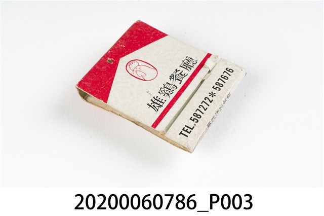 1.內容主要以餐廳、菜館、音響廳、歌廳、夜總會與俱樂部為主的廣告火柴盒。本件文物則有餐廳、店家、歌廳或酒家的名稱。有些火柴盒側邊會有廣告公司與或火柴製造商,如有國榮廣告火柴公司承製、地址為新竹市中正路18號(火車站前)、電話則有各地專線(新竹、臺北、高雄)。也隨著火柴廣告公司的出現,火柴盒的廣告呈現方式也有所不同,類似現今商標LOGO的呈現方式。本件文物的各式餐廳,可以發現類型豐富,包含中式料理、西式料理、越南料理、粵菜料理、日式料理、蒙古烤肉、咖啡店、海產料理。且類型也相當多元,正規西餐廳、一般餐廳、飯店、俱樂部、歌廳、酒家等皆透過火柴盒廣告與宣傳。2.臺灣在打火機與瓦斯爐普及前,火柴是臺灣重要的民生物資,因此火柴生產也行程專門產業,商家透過印製宣傳火柴盒作為贈品,用以販售或免費宣傳發送,盒面商標各具特色,例如臺灣火柴公司發行的「自由之火」火柴盒正面使用熊熊火把作為商標。