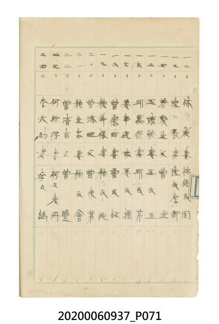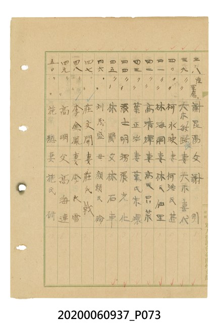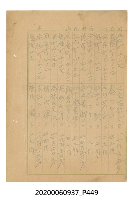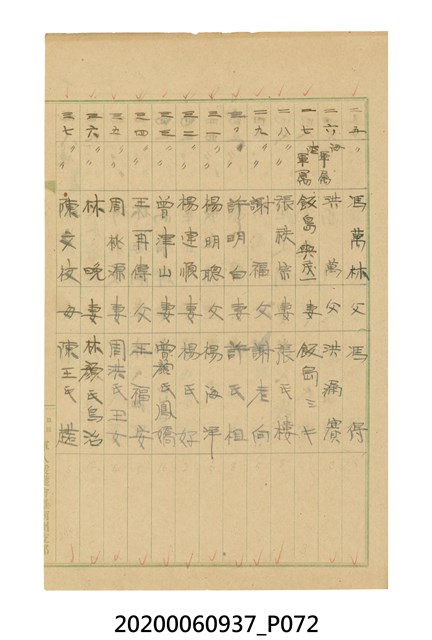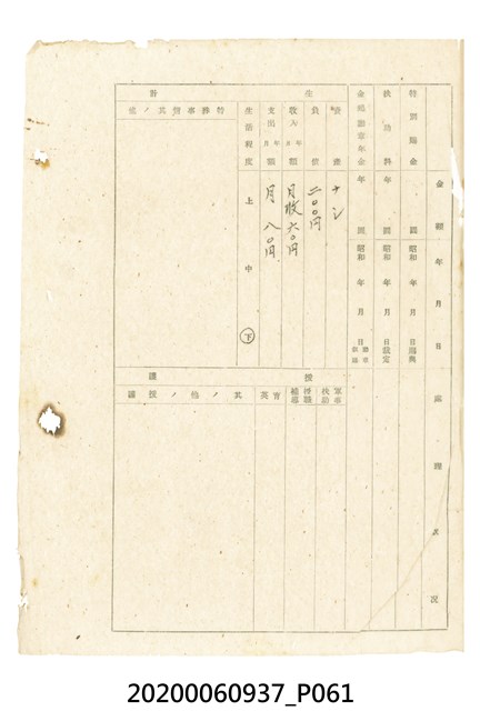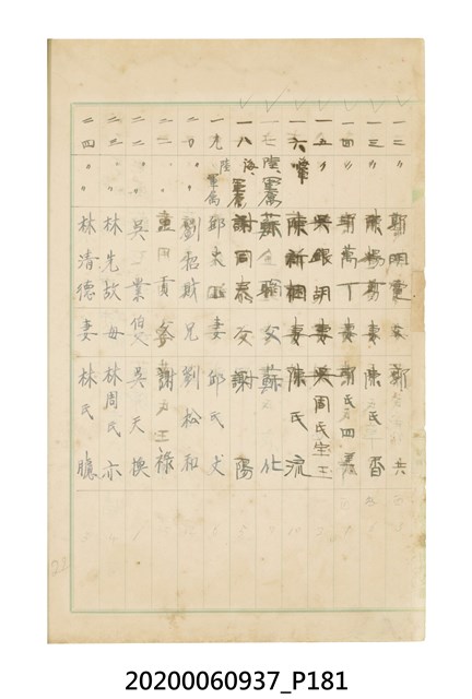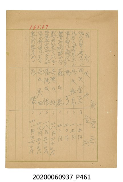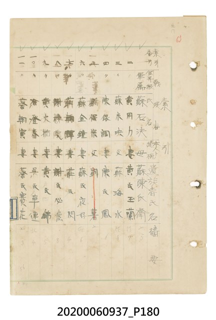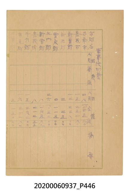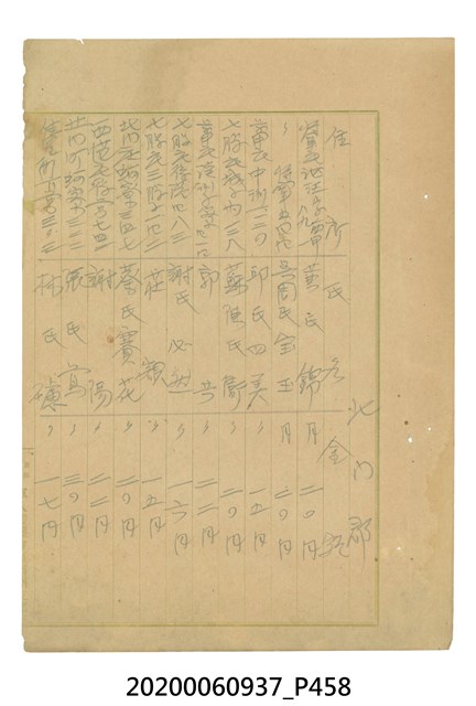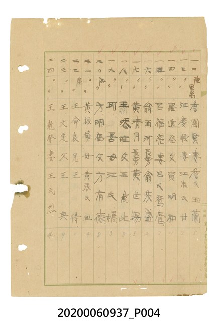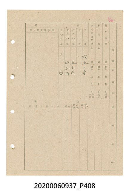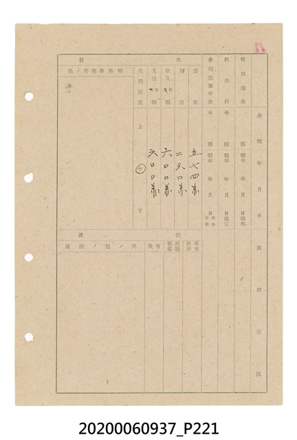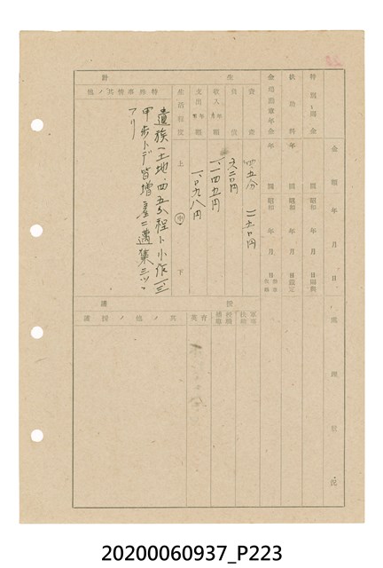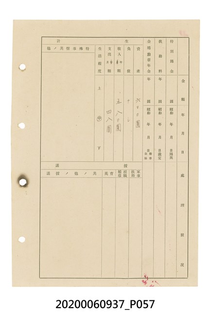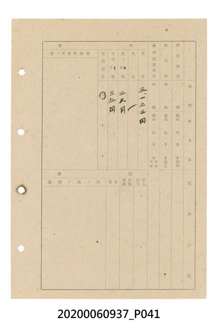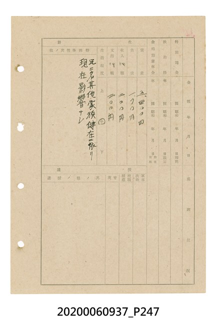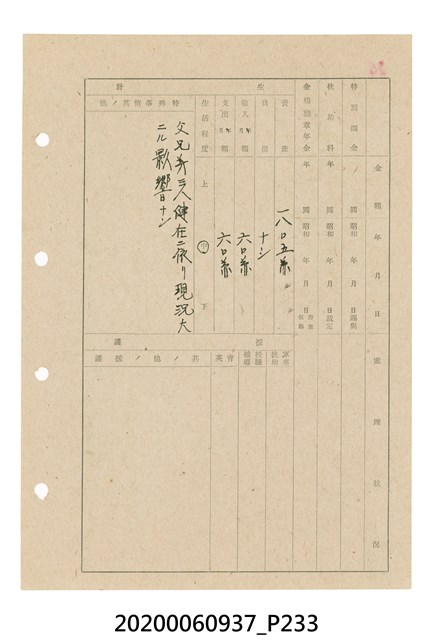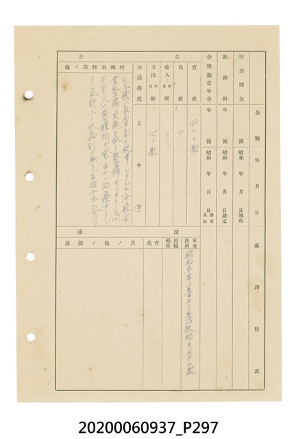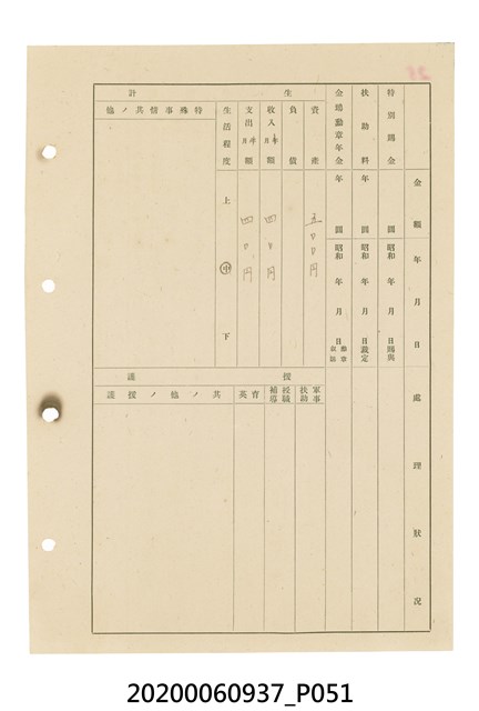 1.本件長19.1公分、寬27.5公分、高4.3公分。本件臺帳登記了戰歿者、軍隊隊號、所屬州郡、製作日期、軍階、應召入軍隊的時間、戰歿時間、死亡原因、本籍居住地、遺族、親戚關係、遺族之個人資料(含出生年月日、職業等)。 2.本件戰歿者名為陳仁火,1916年8月31日生,為軍隊ち號,軍階為軍屬,來自臺南州新化郡,入團時間為1937年9月10日,死亡原因為戰死,戰歿時間為1937年11月18日。本件作成時間為1940年12月17日。遺族包含兩位哥哥(陳德生、陳來春)、一位嫂嫂(陳楊明氣)、妻子(陳楊嫌)與一對兒女(長男陳有三、長女陳澄子)。3.臺帳指的是登記某種事實的帳簿或書冊,例如:土地臺帳;而本件為登記戰歿者及其遺族的相關資料書冊。
