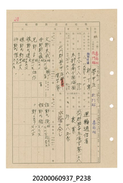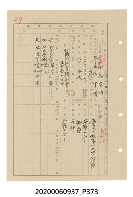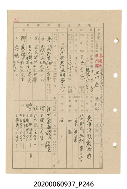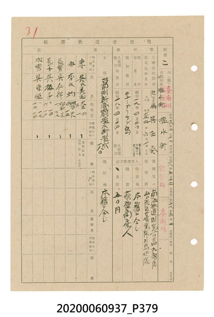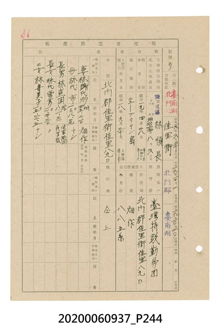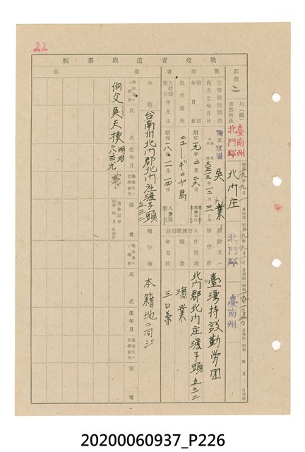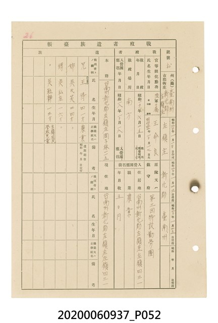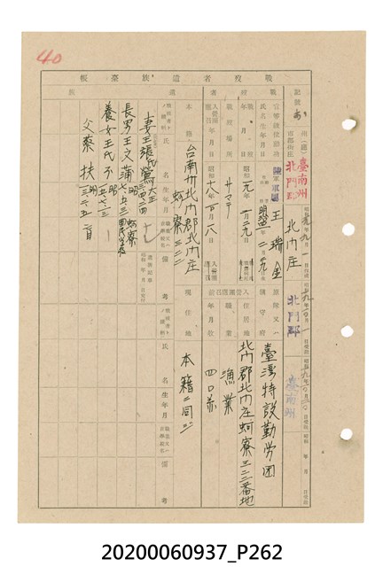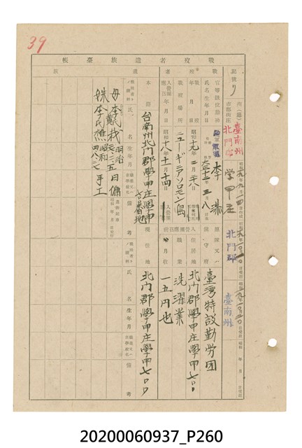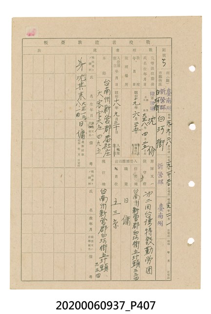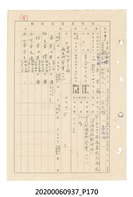 特別志願兵、臺灣特別志願兵、少年志願兵、靖國神社、臺灣軍、南支南洋、支那事變、臺南州、善化街