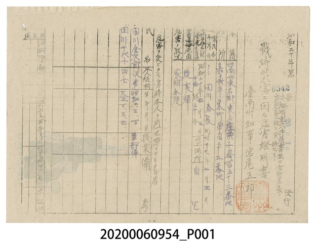 戰時造成的意外災害證明書第6542號(昭和20年6月10日發行)