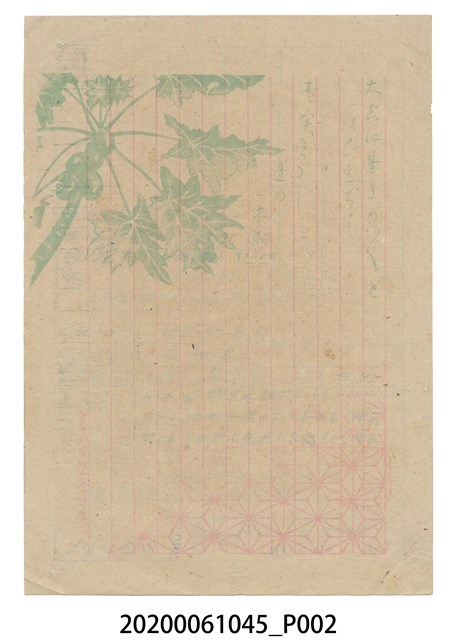 本件長19公分、寬26公分、高0.1公分。為戰時造成之意外災害證明書,為昭和20年(1945)6月10日發行,經手人為臺南州知事宮尾五郎,後方附上文件為個案證明書,包含受害者之籍貫、住所、危害狀況、給付金等相關資料。