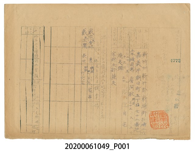 戰時造成的意外災害證明書第4772號(昭和20年7月12日發行)