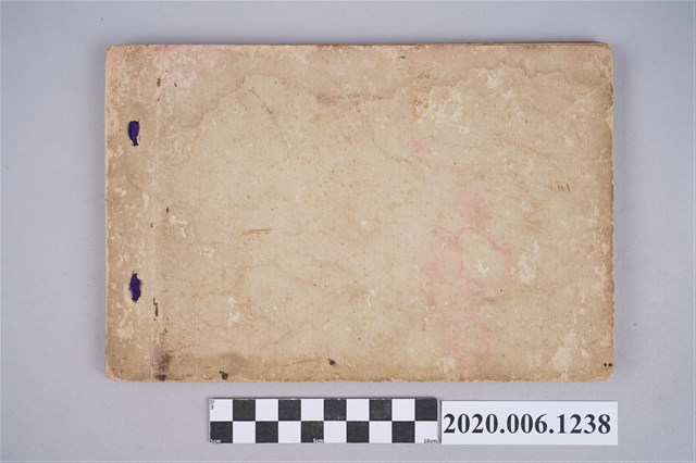 1.本物件為鹿港第一公學校畢業紀念冊,白色封面在右邊有4個圓洞可以穿過繩子將之固定,顯示為右翻記念冊,封面上寫有昭和四年三月、卒業紀念,最下方則寫有台中州彰化郡鹿港第一公學校字樣,整個物件有明顯污漬,封面斑駁褪色。