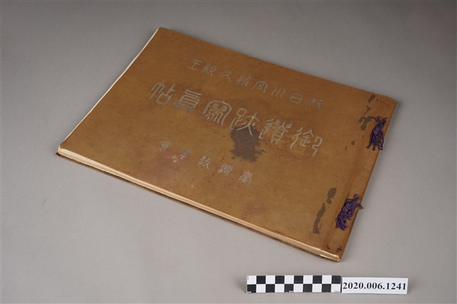1.本物件是臺灣教育會發行的《北白川宮能久親王御遺跡寫真帖》,採橫式印刷,硬殼線裝。封面由上而下依序有篆體之「北白川宮能久親王」、「御遺跡寫真帖」、「臺灣教育會」等3排字。收錄照片包括能久親王率軍來臺時的相關照片,以及能久親王去世後,在臺灣留下的遺跡及相關各神社照片。照片下方都有日文圖說。有版權頁,上載印刷、發行資訊。2.北白川宮能久親王是日本伏見宮邦加親王之地九子。明治維新時,曾被擁立為「東武天皇」,與明治天皇對抗;失敗後被囚禁於京都寺院。後被赦免,隨即赴普魯士留學。返國後,被任命為中將。乙未戰爭時,以近衛師團長身分率軍來臺,期間染上臺灣風土病,最後在臺南病逝。去世後,臺灣民間流傳許多不同版本的死亡傳說,而日人則將它神格化,臺灣主要神社皆祭祀北白川宮能久親王。