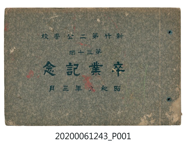 1.本物件是新竹第二公學校第三十屆畢業紀念冊。採橫式印刷,硬殼線裝。封面以灰色為底,由上而下書寫「新竹第二公學校」、「第三十回」、「卒業記念」、「昭和九年三月」等4排字。內容收錄校長、教職員、學生頭像及畢業合照,以及各校園設施、生活照等圖像。