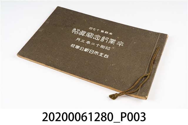 1.本物件為市田寫真館製作的日新公學校畢業紀念冊,採橫式印刷,硬殼線裝,封面以棕色為底,封面書寫形式相同,中央由上而下依序為屆次、書名、年月、校名等4排字。是1937年3月的第17屆畢業紀念冊;內頁收錄校長、教職員、畢業生的個人照及合照,以及校園設施、景觀及學生活動的照片;照片之後為畢業生的名單及住居地。最末頁為版權頁,上載攝影、編輯及印刷資訊。2.日新公學校前身是1917年成立的大稻埕第二公學校,初期暫借大稻埕女子公學校(今永樂國小)教室上課,專收男生。1920年遷入今校址;1922年改名為日新公學校;1934年開始招收女生;1941年更名為日新國民學校。戰後延續日治末校名。1968年因九年義務教育實施,更名為日新國民小學,至今。