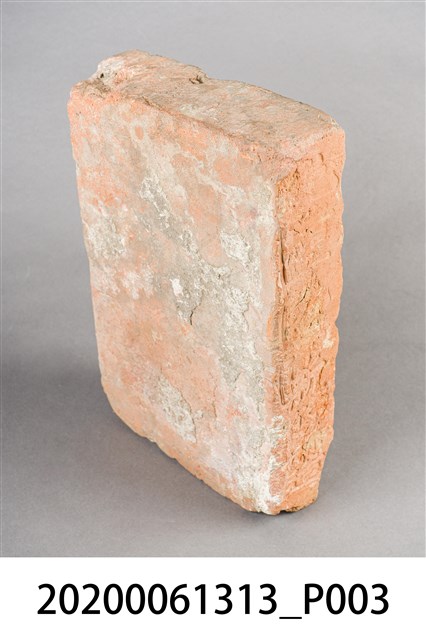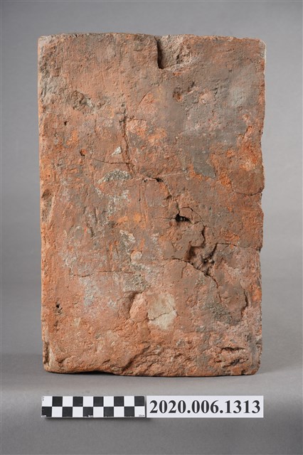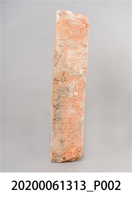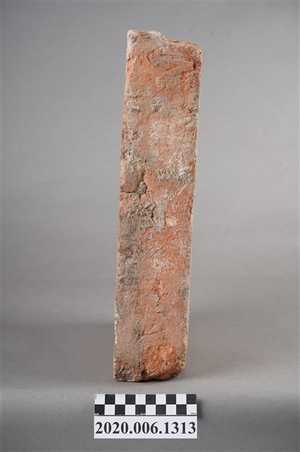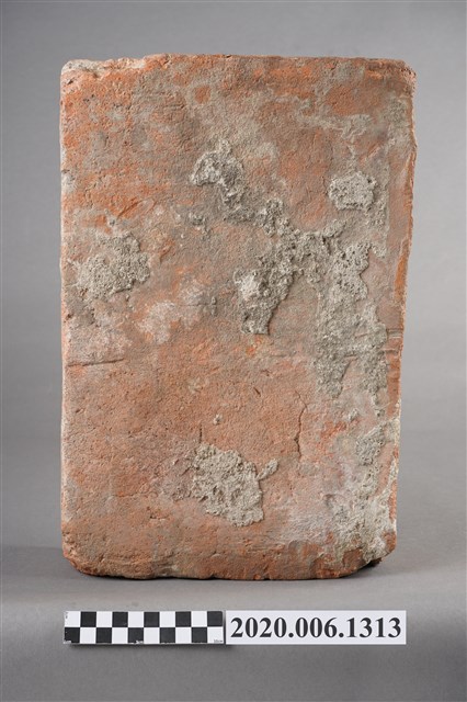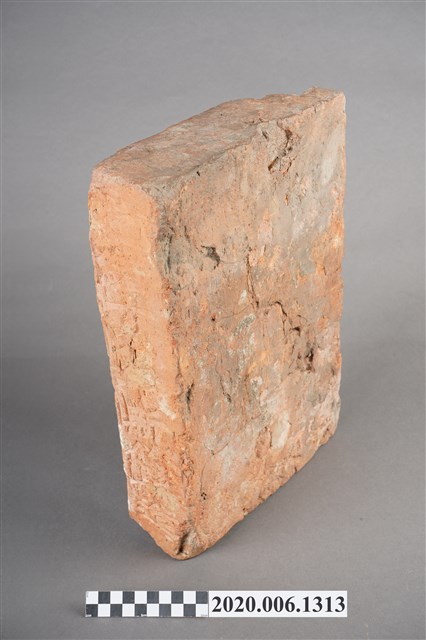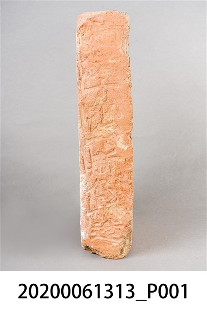 1.本件為光緒19(1893)年新竹縣造之磚塊與拓印,為新竹火車站興建時期所遺留。共計1個磚塊、1張具有三個磚塊的照片、1張《中國時報》剪報、1張磚塊拓印。其中磚塊與拓印內容皆為「光緒十九年新竹縣造」的字樣。 2.有關剪報部分,剪報內容為《中國時報》於1993年3月26日「發現新竹驛(1)1895火車站」,該張剪報的圖片來源為《新竹縣志》,文字為潘國正,內容描述該張照片為日本近衛師團攻陷新竹城並在新竹火車站插上日本國旗後所拍攝。而當時在新竹火車站內發現的兩個機車頭(掣電號和超塵號),目前即為放置於臺北二二八公園的騰雲號。