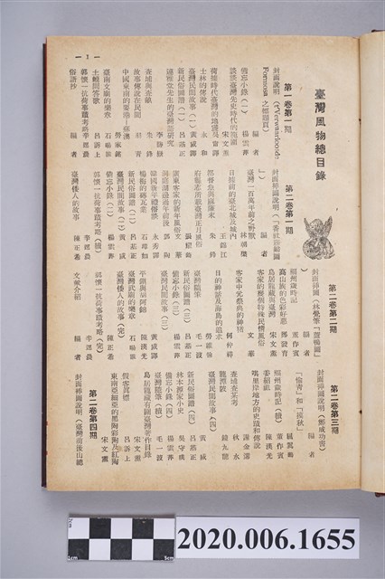 1~2卷10冊合訂為1本,外加「歌謠別冊」一冊,為《臺灣風物》雜誌創刊兩年間11期。