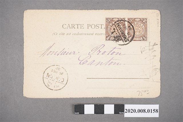 風景片貼蟠龍半分2枚銷上海1902.12.15戳寄廣州, 另銷廣州1902.12.20到達戳