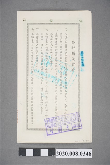 民國49年八七災區復興建設儲蓄券50元、100元、500元、1000元、1萬元各3張, 共15張, 9-98新