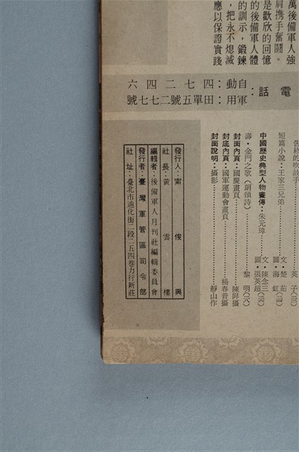 1.本書為《後備軍人》第25期,於民國53年由台灣軍管區司令部印行。上印有恭祝總統萬壽無疆字樣。