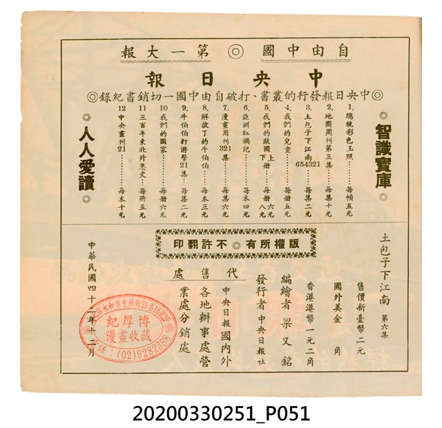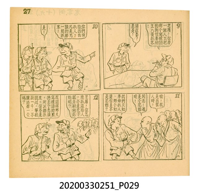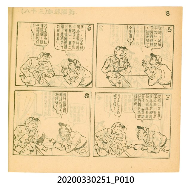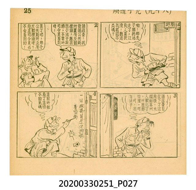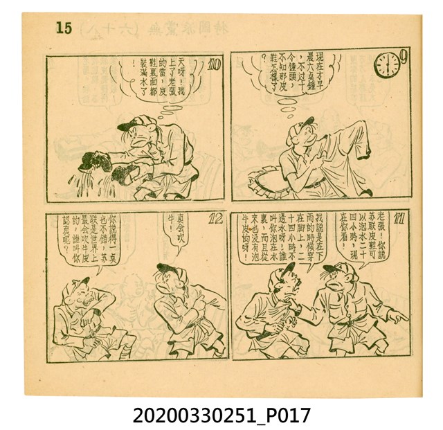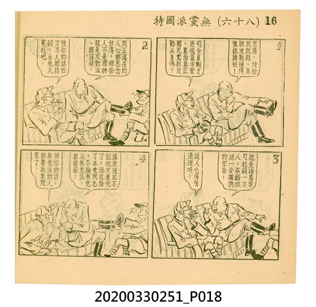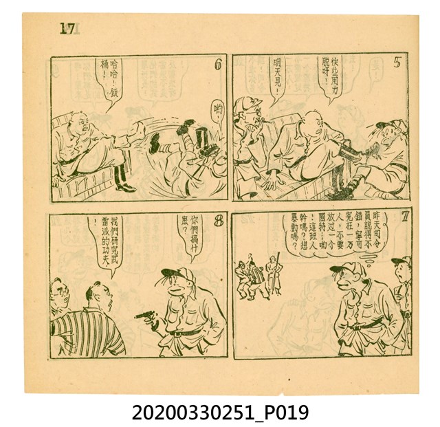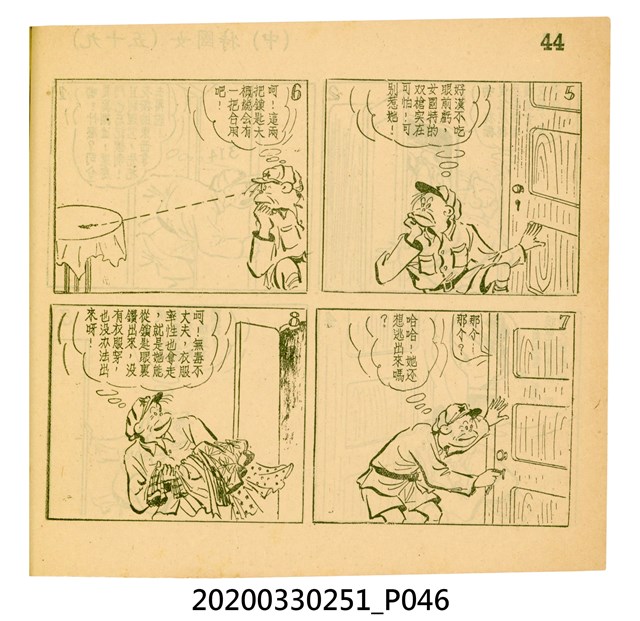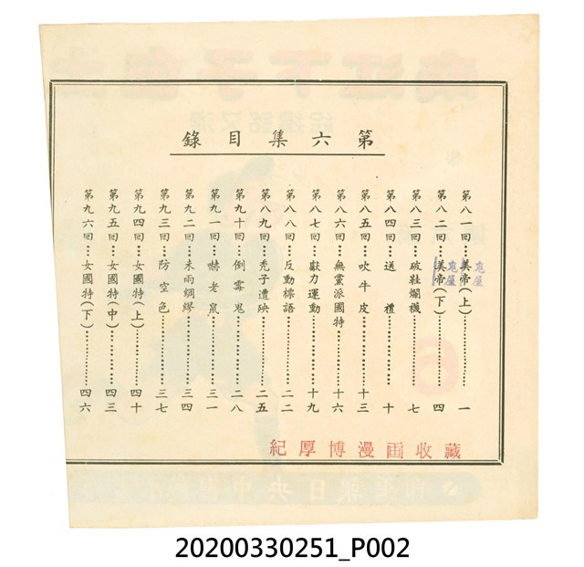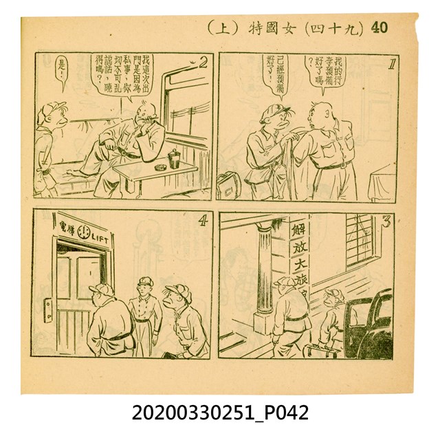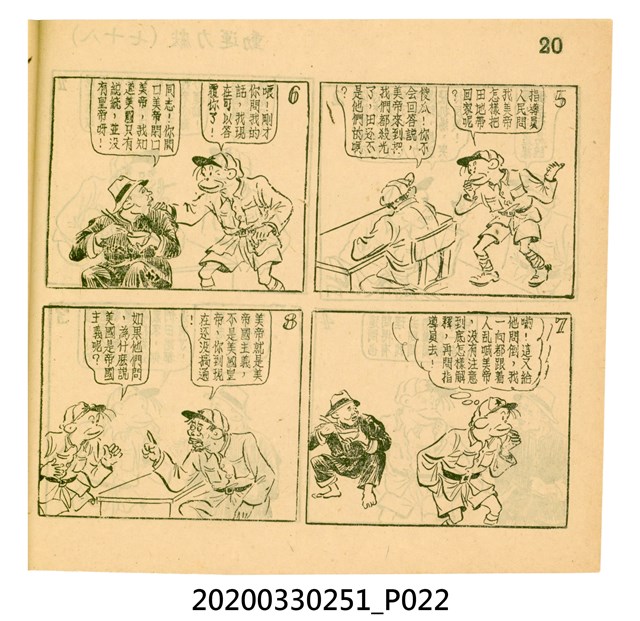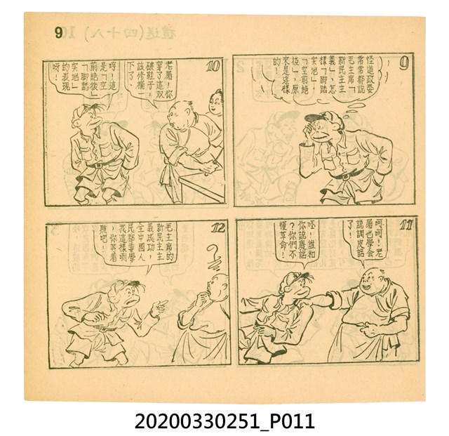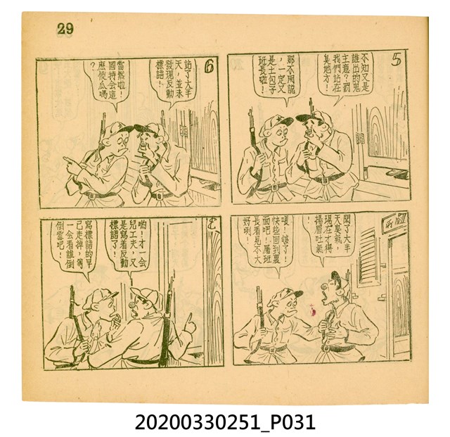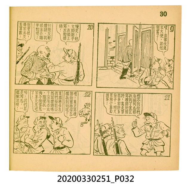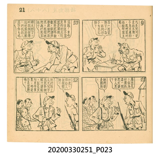 本件為梁又銘所著的漫畫,由中央日報編印。其內容包含〈美帝〉、〈破鞋爛襪〉、〈送禮〉、〈吹牛皮〉、〈無黨派國特〉、〈獻力運動〉、〈反動標語〉、〈禿子遭殃〉、〈倒霉鬼〉、〈嚇老鼠〉、〈未雨綢繆〉、〈防空色〉及〈女國特〉。 2.〈土包子下江南〉故事以鄉下解放軍的視角,探索大都會江南,藉此諷刺共產黨在中國的統治。該故事先後連載於《圖畫時報》及《中央日報漫畫半週刊》,並於後者停刊後,與〈牛伯伯打游擊〉持續連載至1955年,為當時及受歡迎的漫畫作品。 3.梁又銘,於1920年代便加入國民黨,擔任各式畫刊之主編,以圖像藝術進行反共宣傳。於1949年同其兄弟梁中銘在臺灣創辦漫畫刊物《圖畫時報》3日刊。而後隨該刊物停刊並併入《中央日報》,擔任《中央日報漫畫半週刊》的主編,同梁中銘編繪了該刊中絕大多數的漫畫作品,其中梁又銘較擅長長邊連載漫畫。