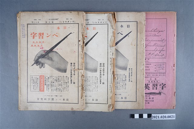 本件為井上英語通信學校發行《英語學習雜誌》,原雜誌書名為:「English」,共計4本,皆為1933年度,分別為第7卷第8號(1933年8月)、第7卷第10號(1933年10月)、第7卷第11號(1933年11月)、第7卷第12號(1933年12月),本雜誌為通信教育教材,內容包括單字、文章閱讀、試題、其他投稿文藝作品等。本文物為梁乃悅先生捐贈伯父梁梓義之日本時代個人物品。