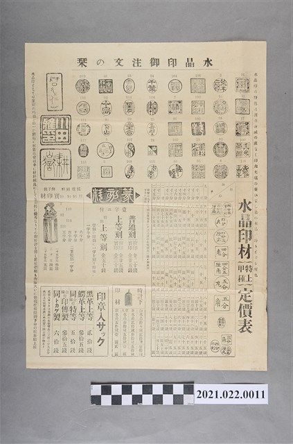 大正5年(西元1916年),水晶製品成為甲斐物產商會的主要出口品,而本商報內容包含甲斐物產商會主石原宗平肖像及簡歷,以及各種水晶製品包含眼鏡、戒指、簪子、扣子等價目表廣告。