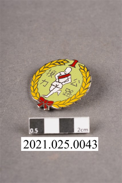 1.本物件為張星賢所藏公路接力賽紀念章,臺灣的公路接力賽自1957開始舉辦,早期路線僅有西螺到臺中市政府,全長55公里,自1965年重新計算屆數,賽事距離也漸漸從1965第一屆的中興新村至臺北擴大到第六屆高雄到台北400公里。