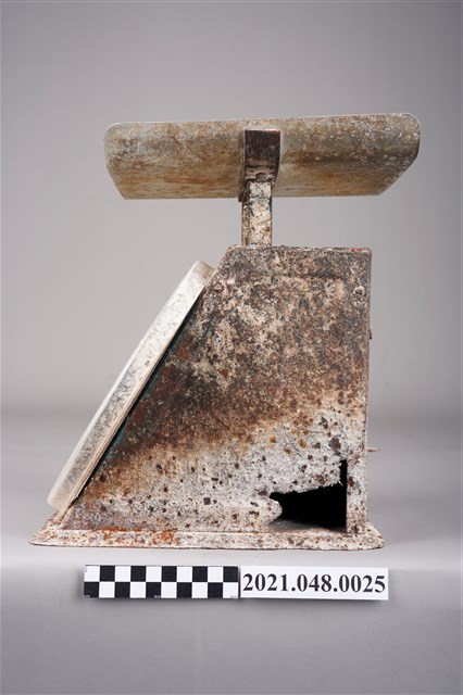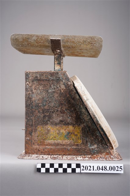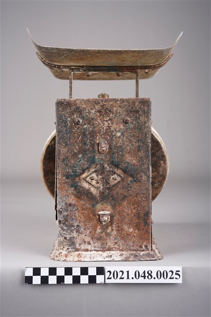 本件為沈家製麵店內使用之7.5公斤的彈簧秤,主要用來製麵時秤麵粉,和賣麵條時秤麵條重量。本件屬壓力秤,主要利用彈簧的變形來測量作用力大小或物體重量的儀器。作用力的大小可以從彈簧秤的指針和外殼上的標度直接讀出,秤上只有一圈黑色公斤刻度。