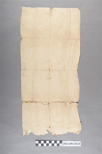 本件為武定里州仔尾保中洲寮陳姓家族買賣土地契約,由邱和尚家中整理所出,推估可能有土地賣買上下幾手移轉脈絡。本件因破損嚴重須待文物攤開後,取得年代資訊。