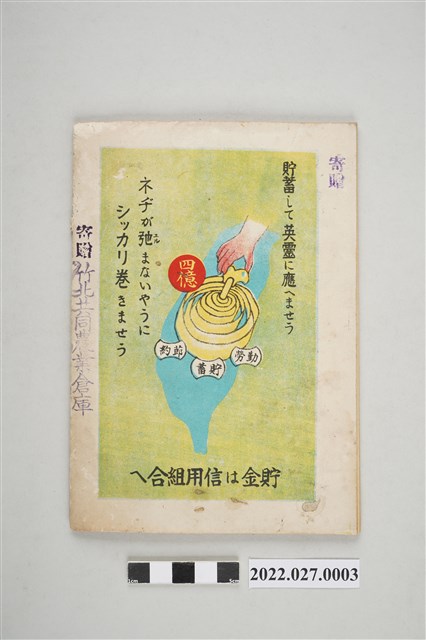 本件為皇道精神研究普及會出版決戰皇民叢書《儲蓄報國の秘訣》。內容包含銃後國民的美英擊滅包圍陣的手繪圖、以及與儲蓄相關的文章。