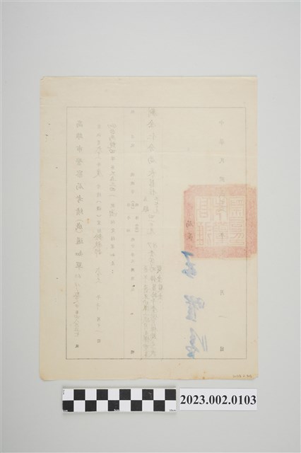 1.本物件為高雄市警察局考績(成)通知書,主要內容為查核劉全仁先生民國62年度考績案,查該員六十二年度考績業經銓敍部六十三年十月十一日(63)臺為甄四字第35341號函核定,劉全仁現職為分局長,職等為荐任,俸(薪)級為五級370元,年功俸(薪)為410元,總分為87分,核定等次為壹等,獎懲為晉年功俸獎金,說明:晉年功俸一個月支俸430元並給予壹個月俸額之一次獎金,發文字號為63.11.1警人字第48357,蓋有高雄市警察局紅色官印,寫有局長王曜臨,整個物件保存良好,唯有明顯泛黃現象。2.公務人員之俸給分為本俸與年功俸;本俸係指各職等人員依法應領取之基本給與,年功俸係指各職等高於本俸最高俸級之給與。警察人員平時考核獎懲種類,獎勵分為嘉獎、記功、記大功,懲處分為申誡、記過、記大過。3.劉全仁,民國9年(1920)生,原籍河北省雄縣。民國39年(1950)39 7月至 47 年 (1958)2月擔任臺灣大學駐衛警察隊隊長,期間於民國42年(1953)取得公務員高等考試警察行政人員任用資格,而後歷任臺中市警察局課員、基隆市警察局秘書、經濟課課長、刑事課課長、高雄市警察局分局長、臺東縣成功分局局長。