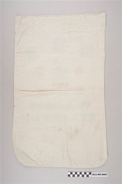 該物件為金獅牌公教麵粉袋,由豐成粉廠股份有限公司製作,公司原址於臺南市民生路2段77號,於1961年8月10日成立,現已解散歇業,物件上中美合作及公教麵粉等標示,下方印有臺灣省糧食局監製,二十二公斤裝,51..旬等字樣,從標示判斷該物件應為民國51年所製造。