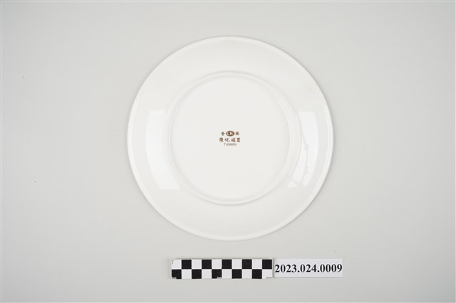 本件瓷盤作圓形淺盤,作白地烤花,上飾綠色議會大樓徽並中英文「台灣省諮議會議長余玲雅」字樣。余玲雅任臺灣省諮議會代理暨三、四屆(2001年-2009年)議長,該件瓷盤應為其擔任議長期間所贈送之禮品。