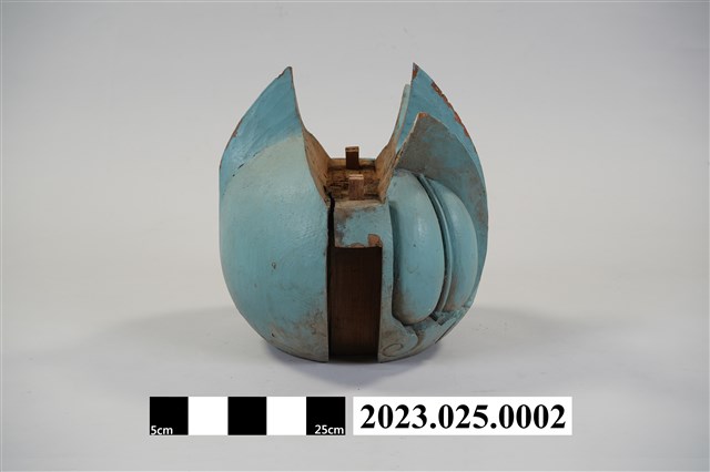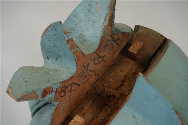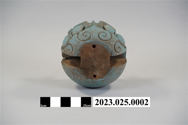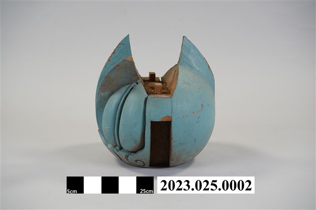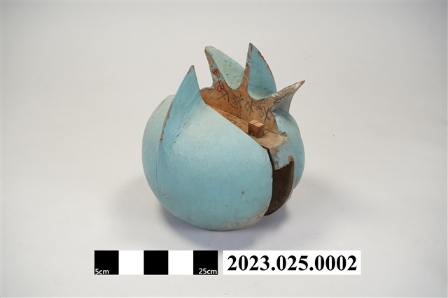 瓜筒為臺灣建築構件中木構件之裝飾構件,依瓜腳(瓜爪)嵌座在大樑,判斷本件形制為金瓜筒,表面覆有水藍色漆料。瓜筒的用途為透過瓜腳包覆或嵌座於房屋之通樑,將其所承接屋頂的重量轉移到通樑上,進而穩定房屋屋頂之結構。