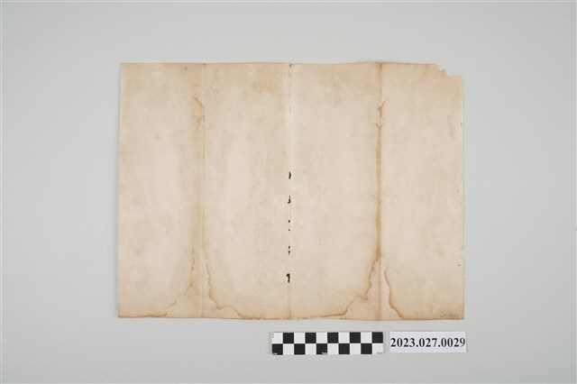 為1935年11月22日溪湖庄協議會員任命書,以毛筆字直式書寫,為臺中州頒發給徐石慶之溪湖庄協議會員證明,協議會為州協議會、市協議會、街庄協議會等日治時期地方議會總稱,該文件內容清晰,有3道折痕、中央折痕處有小洞、水漬痕跡與左上邊角破損。