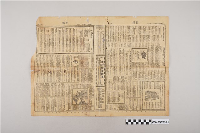 1.本物件為中華職業教育社編輯《生活》第三卷第十九期,正面寫有「本期目次」記載當期文章題名,正面文章為小言論專欄,本期題目為「尷尬」,另刊載文章「萬流仰鏡的蔡孑民先生(上)」;背面為文章與廣告,寫有「短簡」等文章,並刊登江南製紙股份有限公司、四行儲蓄會等商家廣告;翻開內頁為文章,文章包含「千萬望她學點活潑的事」、「顧全家政與職業的美國婦女」、「日本前首相的寫字忙」等。2.《生活》發行時間自民國14年(1925)10月11日至民國22年(1933),旨以用生動的文字、趣味的題材來暗示人生修養,民國15年(1926)10月鄒韜奮接手主編後,開始宣傳抗日思想。