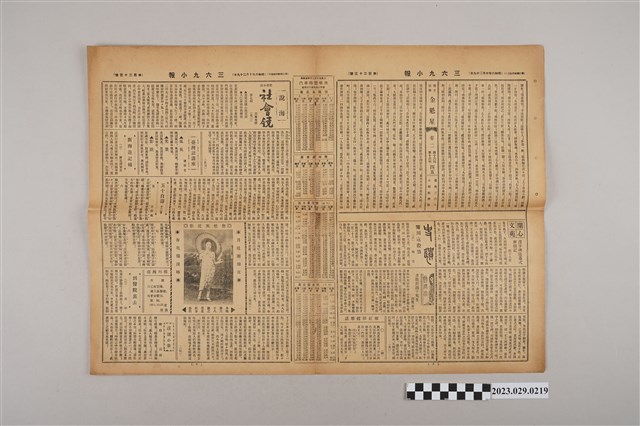 1.本物件為三六九小報社所發行《三六九小報》第百二十三號,發行人為趙雅福,報紙正面刊登清水齒科醫院、蘭記書局、採芳線香商店及大山洋服店等廣告,背面為雜爼專欄、詩壇專欄以及花叢小記、噴飯錄等文章,翻開內頁則為社會鏡、金魁星、新西遊記補等若干長篇連載,內頁中間印有汽車時刻表。2.《三六九小報》發行時間至昭和5年 (1930)至昭和10年 (1935)。旨以刊登戲謔、針貶時事之文,反映當時的社會狀況。