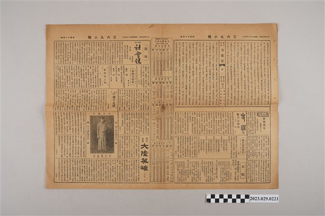 1.本物件為三六九小報社所發行《三六九小報》第百二十五號,發行人為趙雅福,報紙正面刊登伯壎齒科醫院、永茂商行及蘭記書局等廣告,背面為雜爼專欄、花叢小記等文章以及社告專欄,翻開內頁則為社會鏡、大陸英雄、金魁星等若干長篇連載,內頁中間印有汽車時刻表。