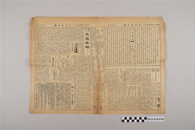 1.本物件為三六九小報社所發行《三六九小報》第二百六號,發行人為趙雅福,報紙正面刊登太原醫院、永茂商行、逢安治療所、關子嶺清秀旅館、山本齒科醫院等廣告,背面為雜爼專欄、雅言專欄、花叢小記等文章,翻開內頁則為大陸英雄、金魁星、天師爺等若干長篇連載,內頁中間為詩壇專欄左下為廣告欄位。2.《三六九小報》發行時間至昭和5年 (1930)至昭和10年 (1935)。旨以刊登戲謔、針貶時事之文,反映當時的社會狀況。